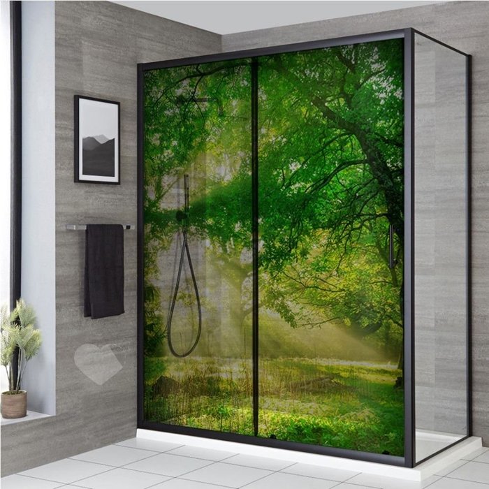 Adesivo para Box de Banheiro 3d Bosque Ensolarado Largura Total até 120cm