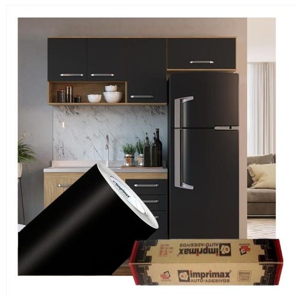 Adesivo para Envelopamento Armário de Cozinha 50cm X 2m:preto Fosco Preto Fosco