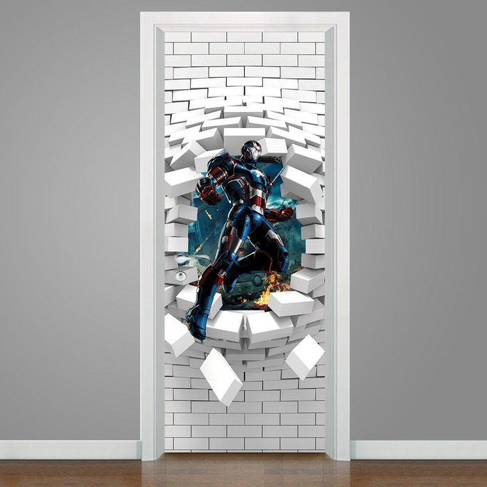 1x Adesivo Para Porta 3D Patriota De Ferro - 215x80cm