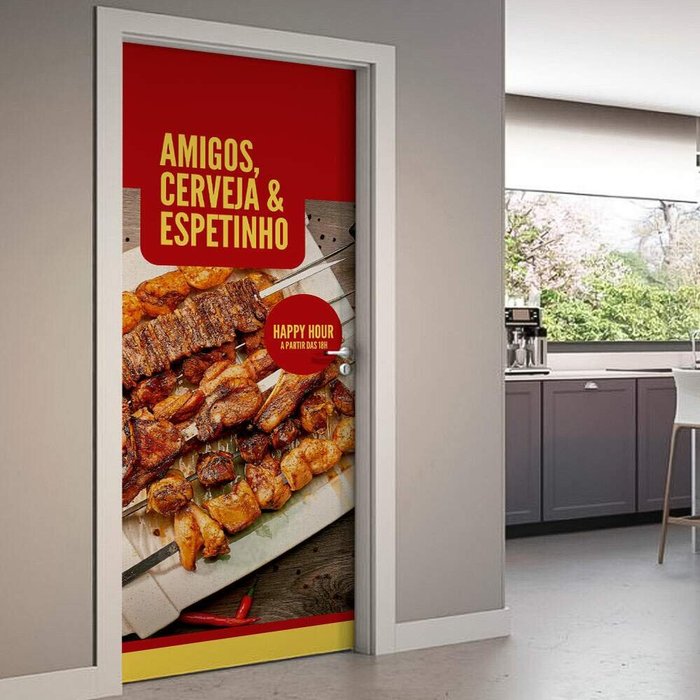 Adesivo Para Porta Amigos, Cerveja E Espetinho- 83X210Cm
