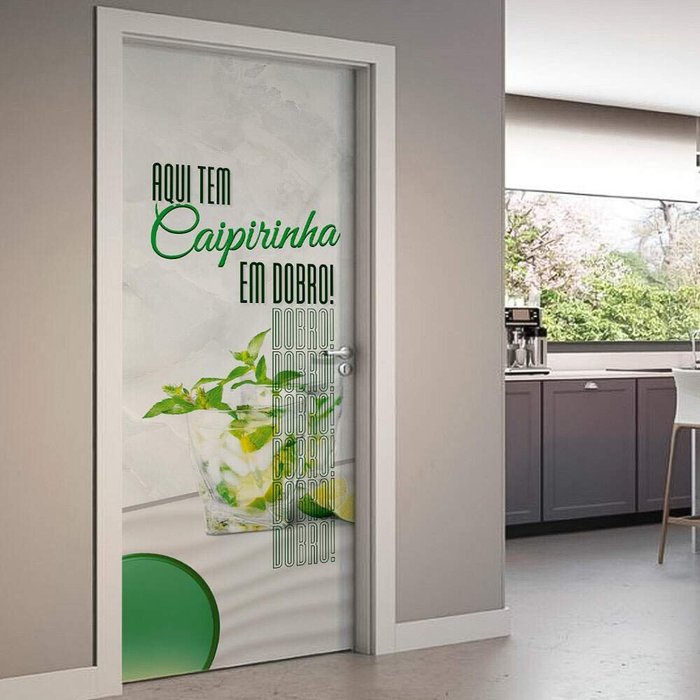 Adesivo Para Porta Para Bar Caipirinha Em Dobro- 73X210Cm