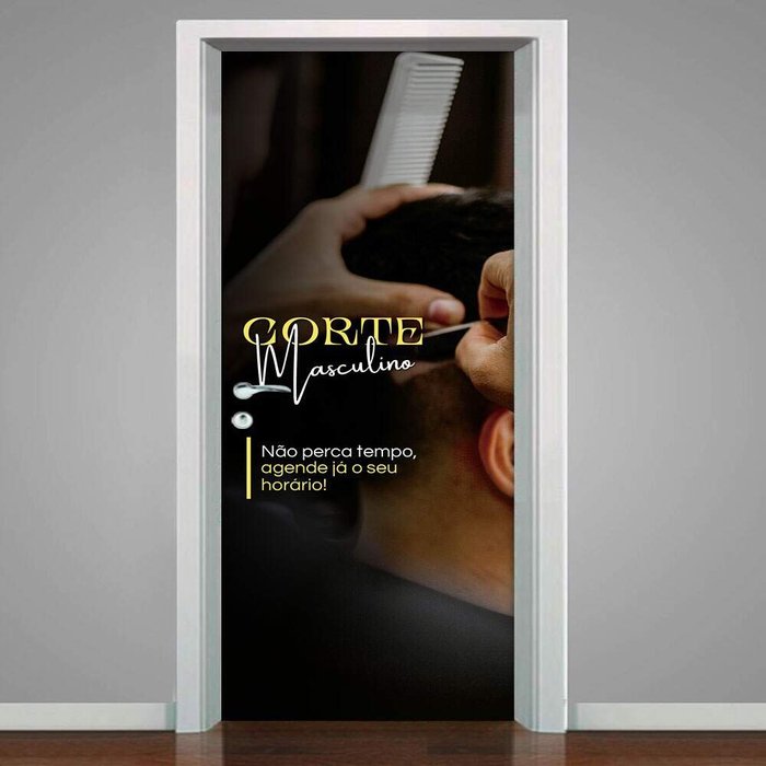 Adesivo Para Porta Para Barbearia Corte Masculino- 73X210Cm