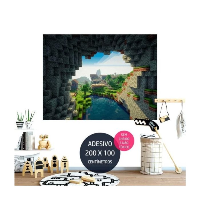 adesivo parede minecraft painel de aniversario AP1288