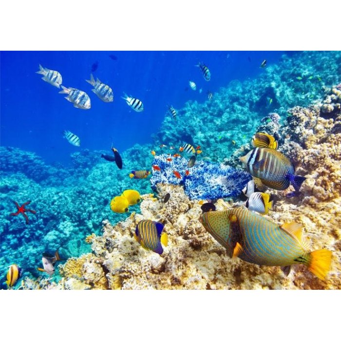 Adesivo Parede Paisagem Fundo do Mar Peixes Natureza GG368