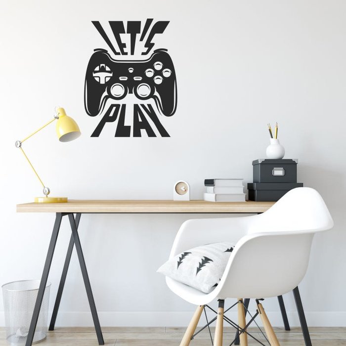 Adesivo Parede Quarto Frase Video Game Let's Play Preto