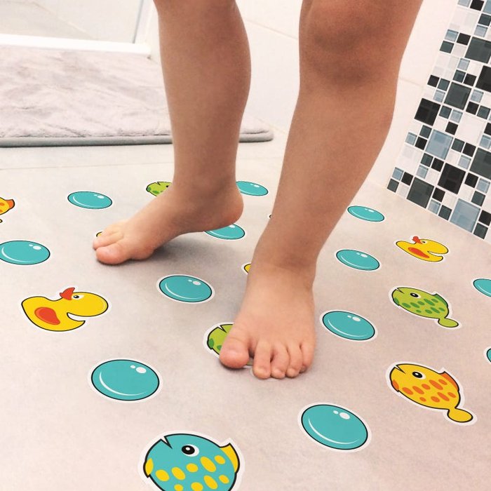 Para deixar a hora do banho mais segura e divertida! O Adesivo para Piso de Banheiro é feito em vinil antiderrapante próprio para ser colocado em pisos de banheiros ou no fundo da banheira. Diferente dos antiderrapantes comuns, esse adesivo tem textura suave que não machuca a pele sensível das crianças.