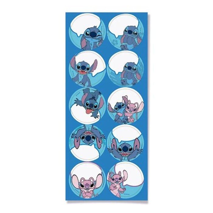 Ficha Técnica:Nome: Adesivo Redondo Stitch Marca: Cromus Dimensões cada Cartela: Altura 28cm x Largura 11cm Quantidade por Pacote: 120 unidades