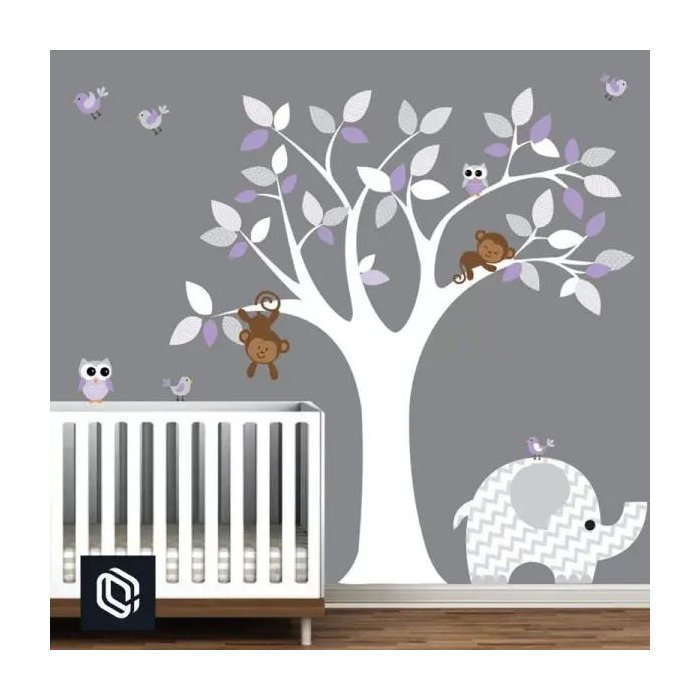 Adesivo Safari de Parede Árvore Macacos Elefantes Lias