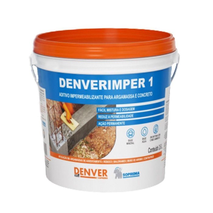 Aditivo Impermeabilizante Denverimper 1 3,6 L DENVERIMPER 1 é um aditivo impermeabilizante que durante o processo de hidratação reduz a capilaridade de argamassas e concretos não estruturais, oferecendo ótima impermeabilidade. O DENVERIMPER 1 é utilizado em argamassas para revestir lajes e paredes em contato com umidade e na execução do assentamento de alvenaria interrompendo o fluxo de umidade ascendente. Uso: - Rebocos; - Contrapisos; - Argamassa de assentamento de blocos/tijolos; - Argamassas para revestir baldrames e muro de arrimo. - Em concreto utilizado com lastro em pisos, calçadas etc. Vantagens: - Fácil mistura e dosagem; - Reduz a permeabilidade; - Base mineral; - Ação permanente. Cuidados: - Não recomendamos revestir estruturas em lugares com lençol freático ativo; - Não deve ser utilizado como barreira de vapor para pisos não cerâmicos; - Atua na capilaridade da argamassa, não sendo eficaz em fissuras e falhas de execução; - Não recomendamos a utilização em concreto usinado. As cores do produto podem variar de acordo com o monitor, a iluminação do ambiente e a sua percepção visual. Verifique nossas políticas internas para que não haja nenhuma dúvida no processo de entrega ao finalizar a compra.