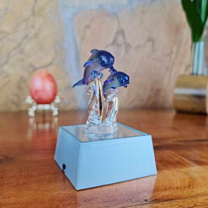 Lindíssimo Adorno golfinho de Cristal espelhado, com base luminosa.