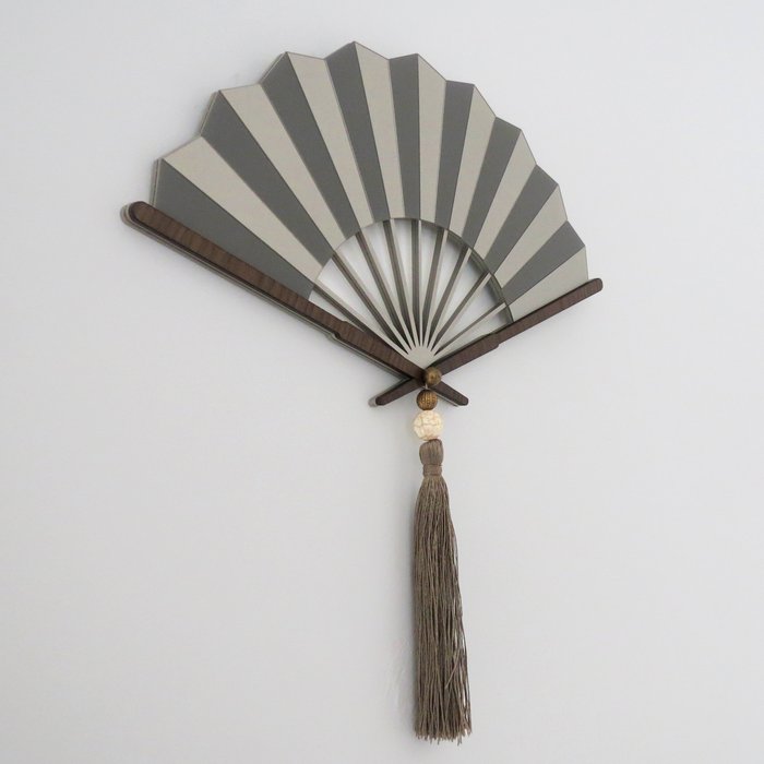 Adorno Leque Decorativo de Parede Cinza Madeira Acrílico
