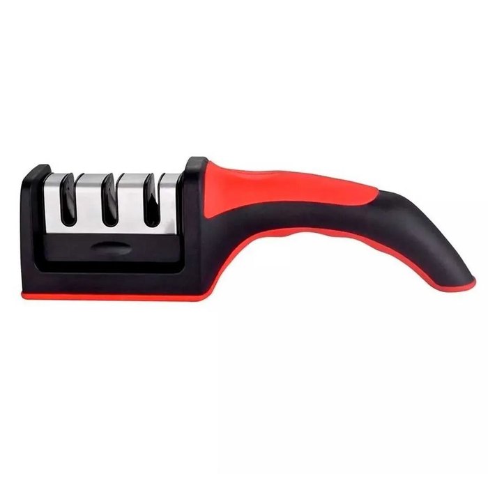 Afiador de Facas 3 Níveis em Aço Inox 21,5cm Prata, Preto com Vermelho
