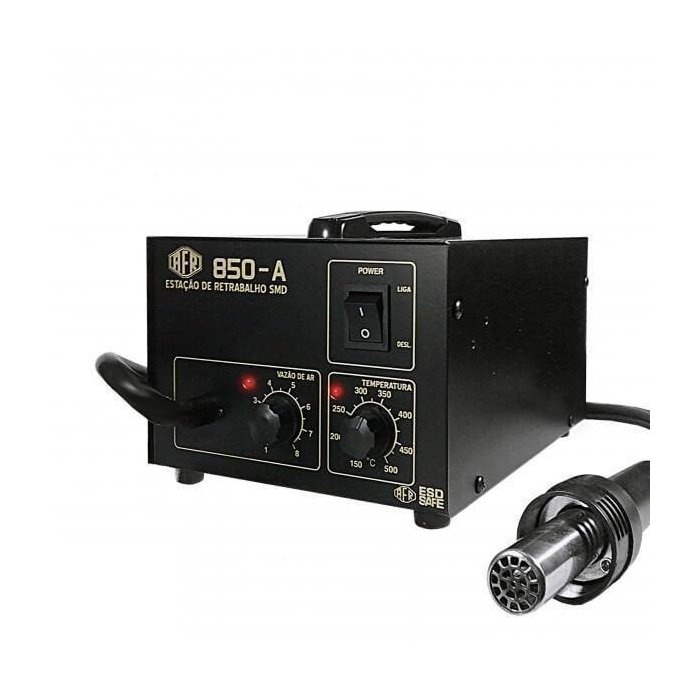 Possui controle de temperatura e vazão de ar. Foi especialmente desenvolvida para técnicos profissionais, no retrabalho em placas eletrônicas e componentes smd. Possui resfriamento automático e certificado inmetro.