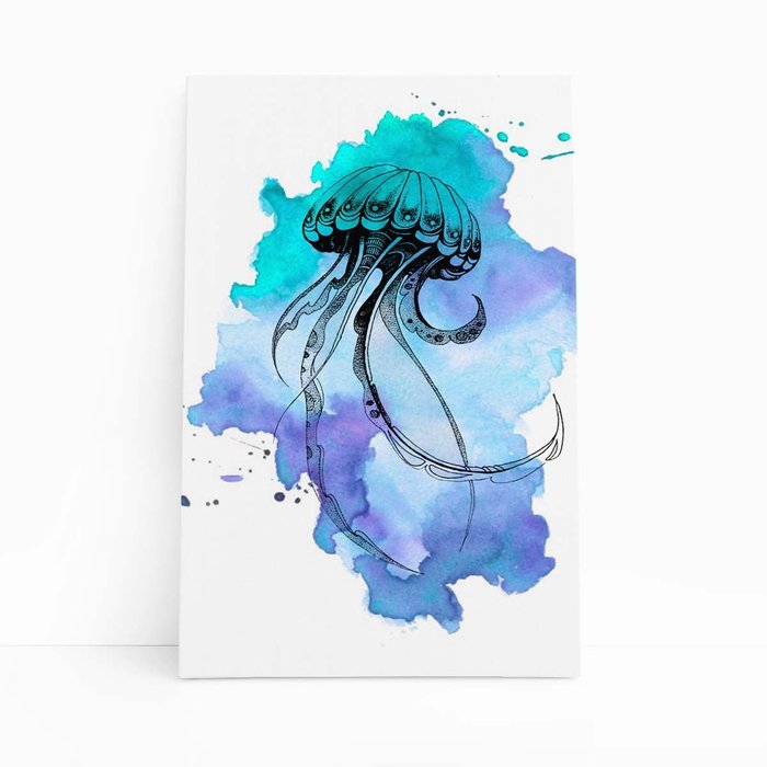 Água Viva Azul e Roxo Arte Aquarela Quadro Canvas 60x40cm