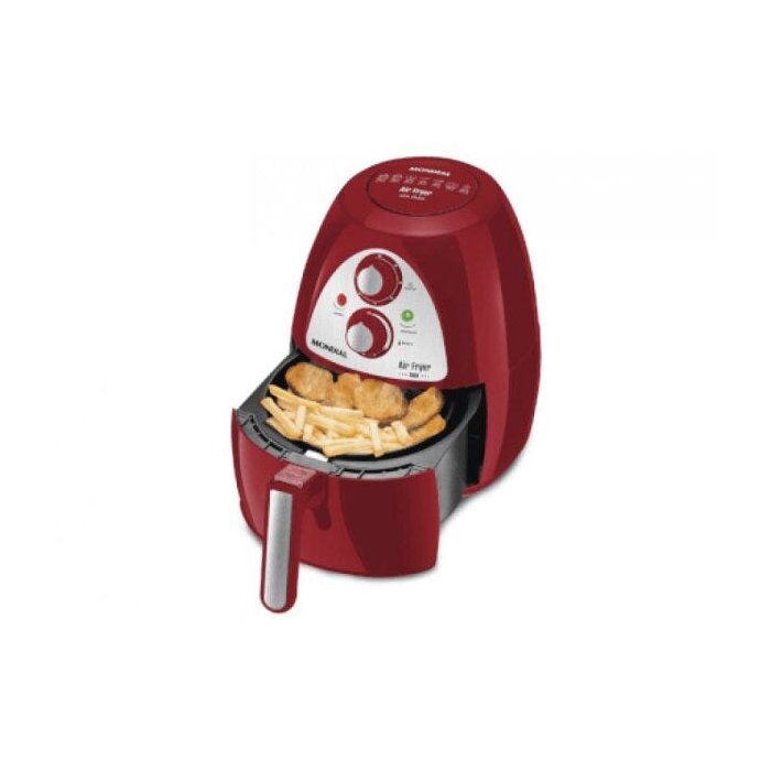Assa, tosta, cozinha, gratina por convecção a arControle de temperatura até 200ºCCapacidade de até 2,7 L no cesto de alimentosCapacidade total de até 4LDescrição Técnica:Modelo: Air Fryer Inox REDPotência: 1500WConsumo: 1,5Kw/hOrigem: ImportadoGarantia: 12 mesesVoltagem: 127VItens Inclusos:01 Mondial Air Fryer, Manual de Assistência Técnica, Manual de InstruçõesDados do produto Garantia: 90(dias) Marca: Mondial NCM: 85167920 EAN: 7899882302516 Dados de Embalagem Peso Total (Produto + Embalagem): 5800.00(gr) Altura: 33.00(cm) Largura: 35.00(cm) Profundidade: 27.00(cm)