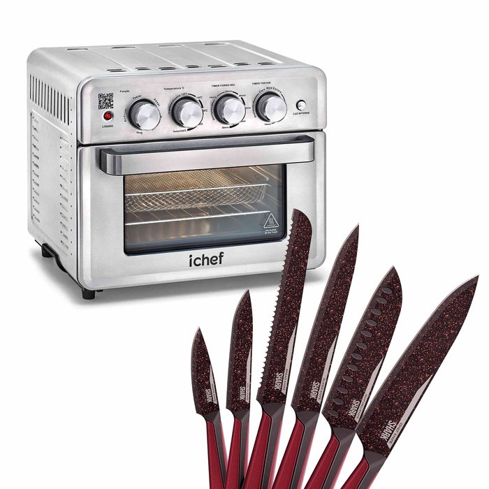 Airfryer + Forno Ichef Ovenfryer Max 26l e Conjunto de 6 Facas Special Cut Vermelha | 127v