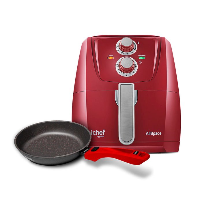 Airfryer Ichef Polishop AllSpace e Panela Ultra Sauté Grand 24cm - Vermelha | 220V