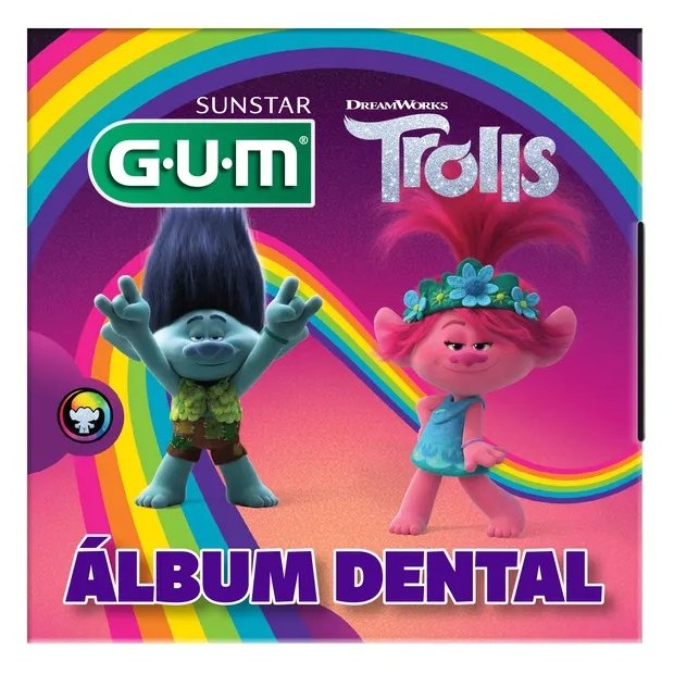 O Álbum Dental Trolls foi desenvolvido para que os pais possam guardar os dentes de leite que caem dos seus filhos e a criança também possa acompanhar a troca dos dentes de maneira divertida, guardando tudo nos porta dentinhos.
