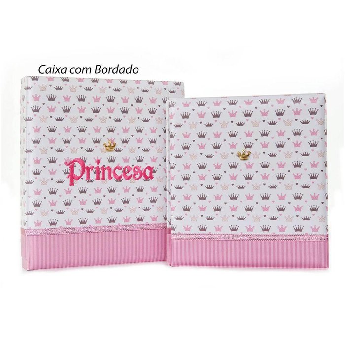 Álbum Fotográfico Com Estojo Para 80 Fotos 15x21 - Bordado Luxo Bebê Menina Rosa