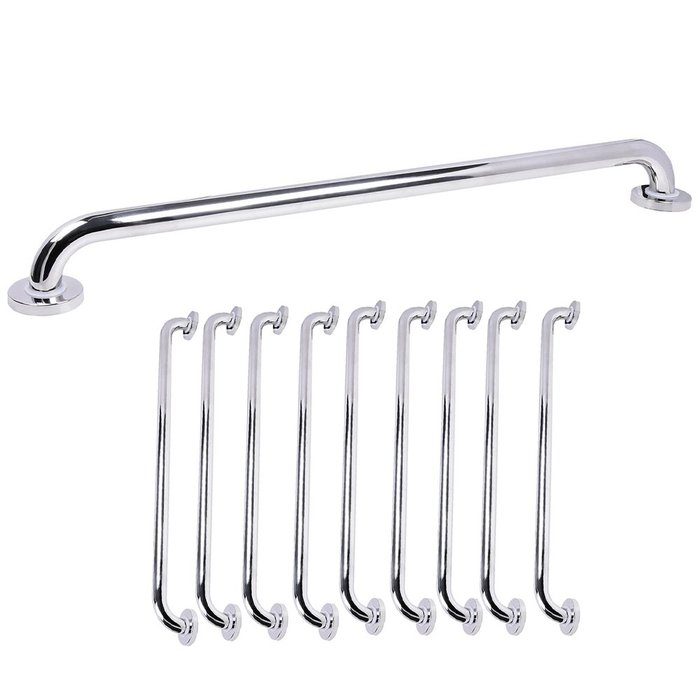 Alça Barra de Apoio 70cm Idoso Cadeirante Kit 9 Unidades Deficiente Corrimao Box Banheiro Corredor S Metal Polido