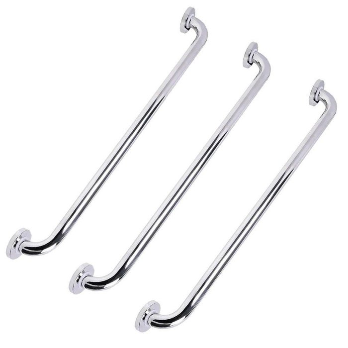 Alça de Apoio 70 Cm Aço Inox Kit 3 Uni Alça Suporte Acessivel Idoso Gestante Criança Metal Polido