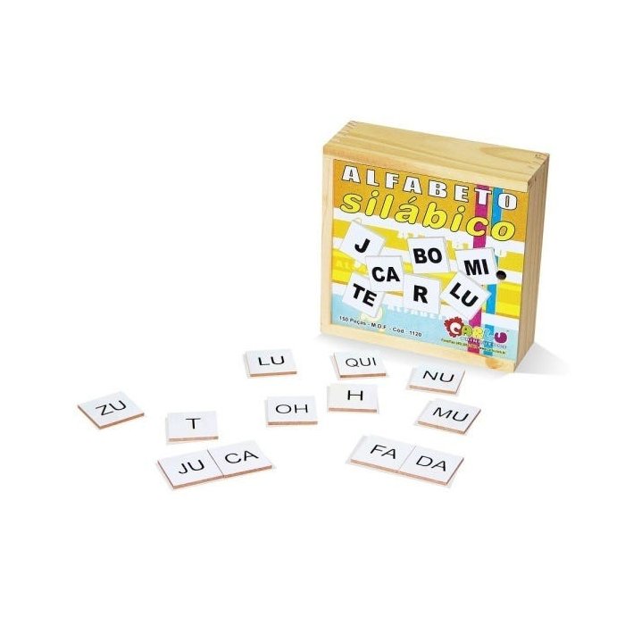 Alfabeto confeccionado em M.D.F. composto por 150 peças medindo 4x4cm com letras e silabas. Embalagem: Caixa de madeira medindo 18x18x6 cm. Lacrada com película de P.V.C.encolhível.CE-BRI/ICEPEX - N 00928-96