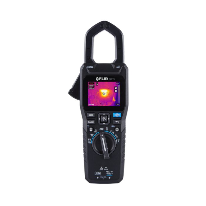 O alicate amperímetro FLIR CM276 combina imagens térmicas com medição elétrica para inspecionar e solucionar problemas de sistemas elétricos, painéis solares, bombas e motores.