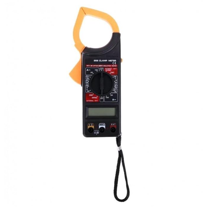 O Alicate Amperímetro além de oferecer função de medição como um Multímetro, dispõem ainda de mecanismo para medição de amperagem.Esta medição auxilia o eletricista e analista a dimensionar o cabeamento da rede elétrica.Alicate amperímetro, utilizado para testes de voltagem DC, AC, corrente DC, resistência e DB.Conectar o fio no espaço entre as pinças, para visualizar automaticamente a medição.Utilizado com pilha AA (não inclusas).Visor LCDCorrenteResistênciaTeste de continuidade com sinal sonoroPolaridade automáticaAlimentação: 01 bateria de 9 vCorrente CA 0,1A a 1000ATeste de Isolação: 00 a 2000M(Com equipamento opcional de teste de isolação até 500V) Tensão CA: 1V a 750VTensão DC: 1V a 1000VResistência : 100m a 20K Teste de continuidade: 50 +/ 25Itens: 01 Alicate Amperímetro Multímetro Digital 01 Capa Plástica 01 Bateria 09 volts 01 Manual de instruções básicas do equipamento