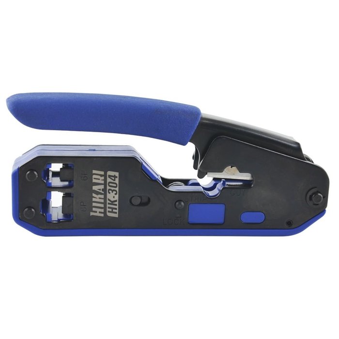 O Alicate de Crimpar HK-304 é 3 em 1 Corta, Decapa e Crimpa conectores RJ45, RJ12 e RJ11. É ideal para crimpagem de conectores utilizados em redes de dados e de voz.