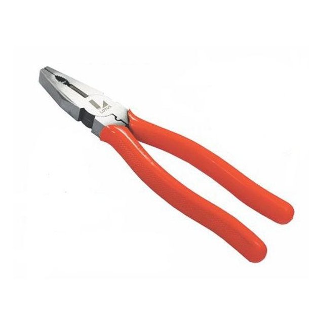 ALICATE UNIVERSAL COM PRENSA TERMINAL, IDEAL PARA ELETRICISTAS Alicate Universal de 9 polegadas, com prensa terminal, em aço carbono forjado e temperado, revestimento em níquel, resistente a oxidação (ferrugem) , cabo, ergonômico, antiderrapante para mais proteção e melhor aderência, mandíbula plana e oval, versatilidade com alto poder de corte, para prender e desenroscar, cortar cabos e arames de metais diversos, ideal para eletricistas, fazendeiros, etc. Qualidade Garantida Lotus