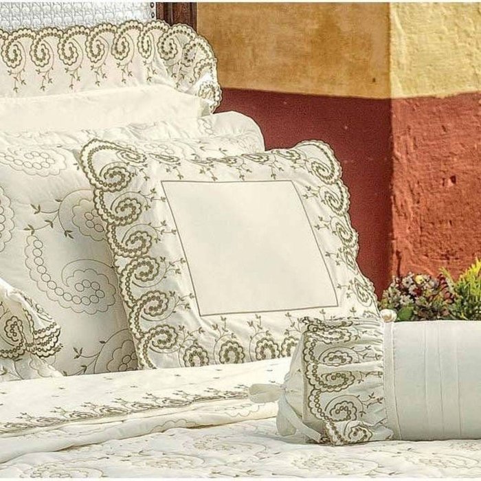 Almofada Avulsa Mistral 01 Peça 100% Algodão 200 Fios Bordado Ponto Ajour- Palha