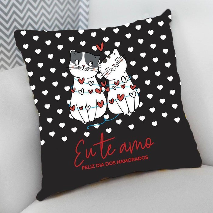 Almofada Decorativa Cheia C/ Zíper 25x25 Presente Gatinhos Namorados