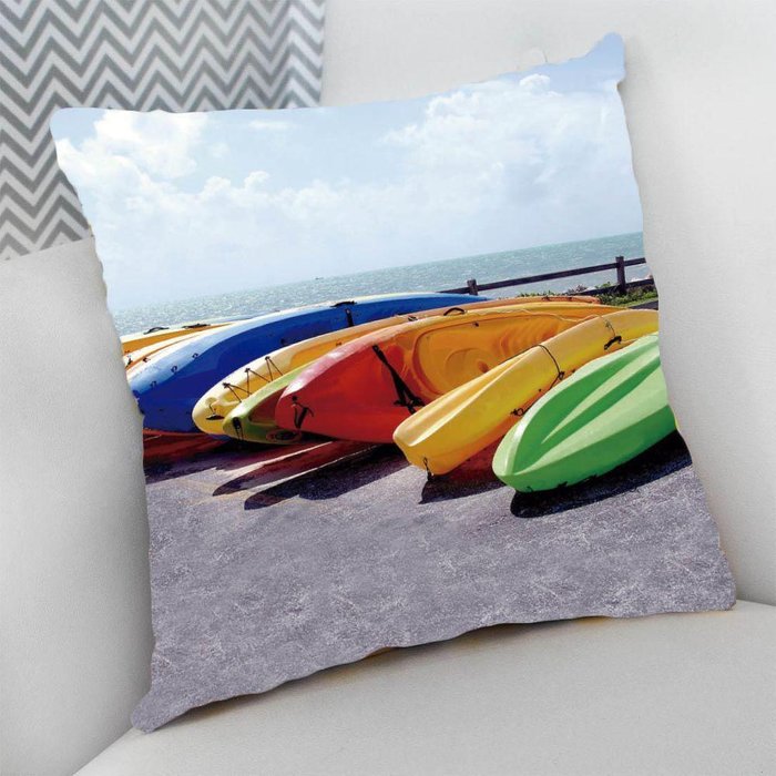 Almofada Cheia C/ Zíper 25x25cm Mar Canoas Coloridas
