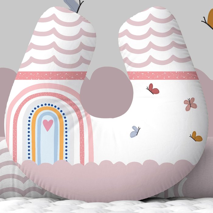 Almofada de Amamentação Travesseiro Arco-íris Colorido Borboletinhas