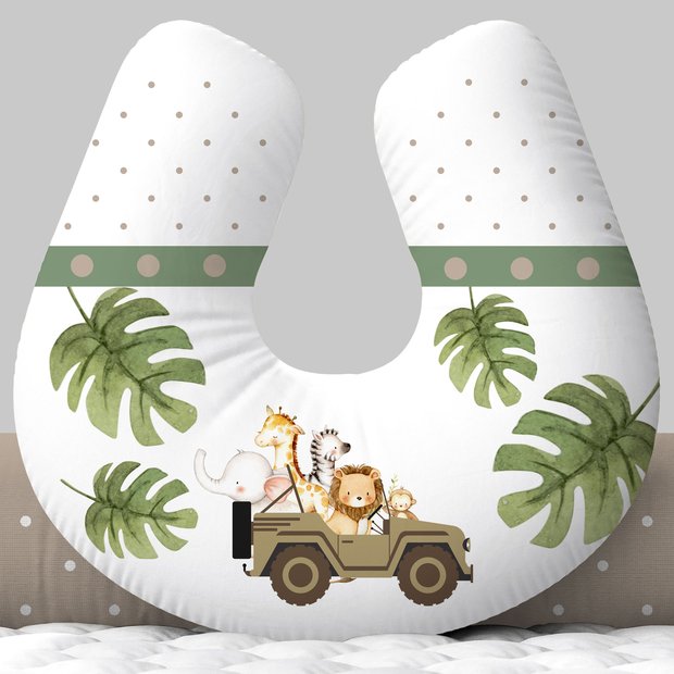 Com seu formato, a almofada facilita a amamentação do bebê, para não haver tensão nos ombros