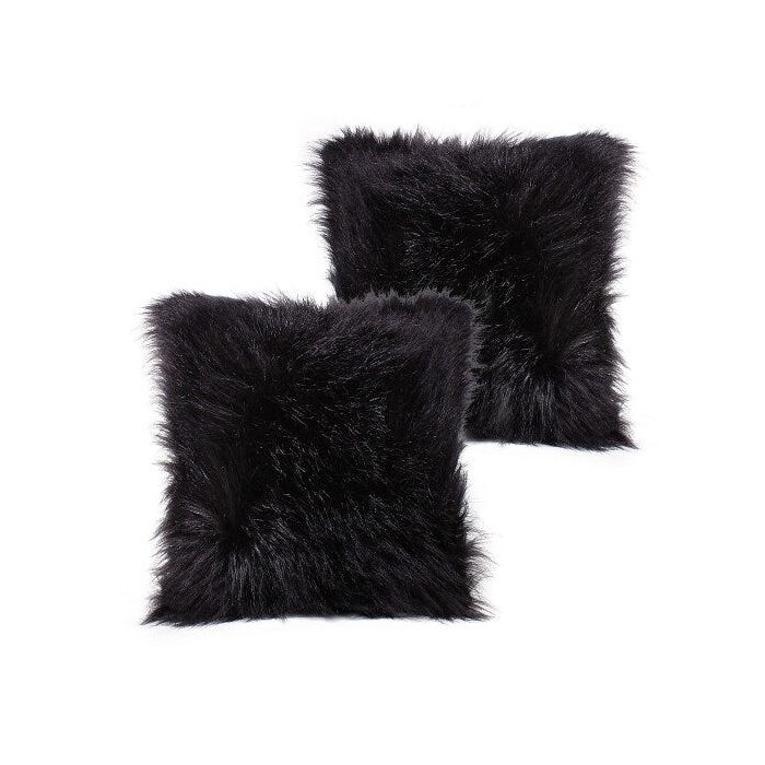 Almofada de Pelo Preta Pelo Longo Alto 45cm com Refil de Silicone 2 Unidades