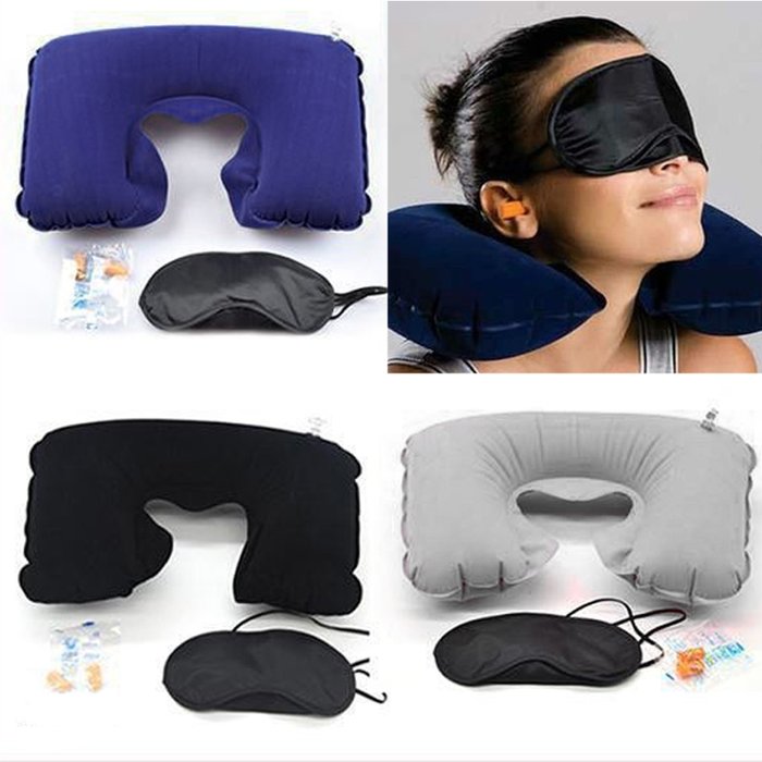 Almofada De Pescoço Inflavel + Tampão De Ouvido, Tapa Olhos