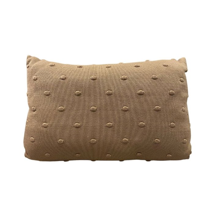 Almofada de tricô bege, trama bolinhas, 35x55cm, com enchimento.
