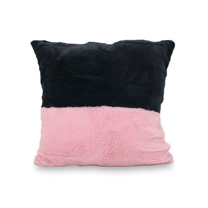 Almofada Decorativa Peluciada Preta e Rosa Pelo Curto 45x45cm