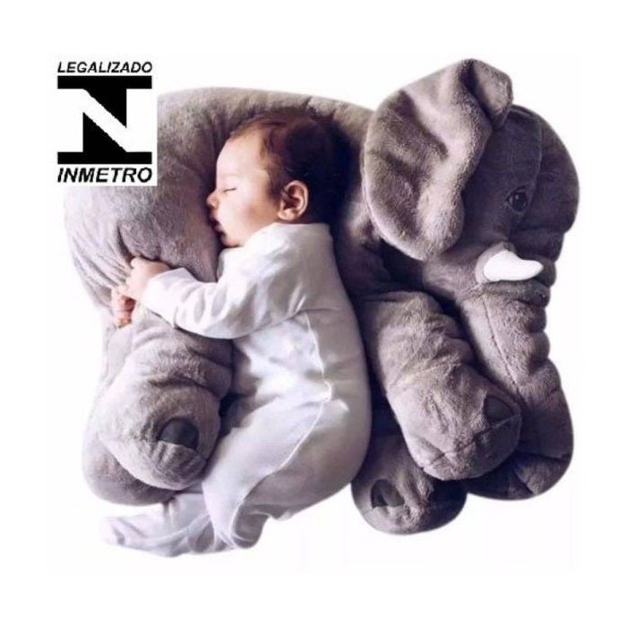 Almofada Elefante Pelucia Gigante 60cm Cinza para bebê