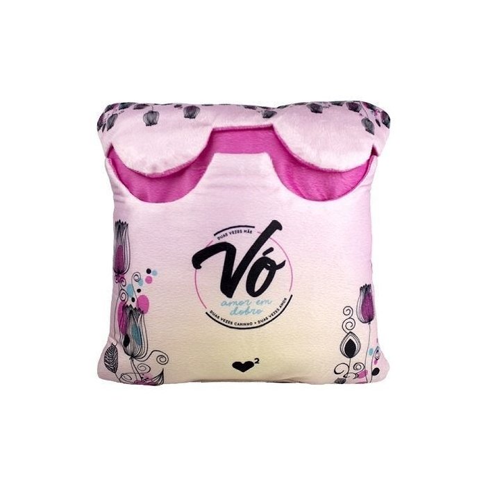 Almofada Esquenta Pé Vó Amor em Dobro Descrição Almofada muito fofa com bolso para os pés que vai deixar a sua avó com os pés bem quentinhos, por que vovó é tudo de bom!! Características 1 almofada com bolso para colocar os pés. Material Tecido pelúcia 100% poliéster, com enchimento em fibra siliconada e espuma pack. Cuidados - Lavar à mão e deixar secar à sombra; - Utilizar sabão neutro; - Não utilizar alvejantes ou outros produtos químicos; - Não passar ferro; Medida do Produto 10 cm (Altura) x 40 cm (Largura) x 40 cm (Comprimento) Aviso: Imagens meramente ilustrativas