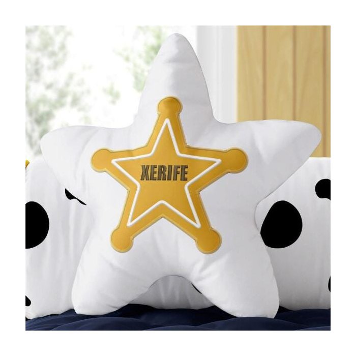 Para adicionar um toque lúdico e original à decoração do quarto de bebê ou infantil, conte com a Almofada Estrela Toy Story Woody. Essa almofadinha decorativa possui bordado oficial do acervo Disney e Pixar com a estrela distintivo de xerife e já vem com enchimento macio. Você pode usar sobre a cama babá, na poltrona amamentação e até na caminha infantil. 01 Almofada Estrela 30cm alt. x 30cm larg. Composição Tecido Percal 80% Algodão / 20% Poliester 150 Fios Enchimento 100% Fibra de Poliéster Siliconada
