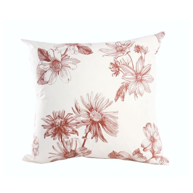 Almofada em tecido natural de algodão com motivo floral, já vem com recheio de fibra siliconada e zíper lateral para facilitar a lavagem e conservação. Almofada charmosa para quartos e salas...