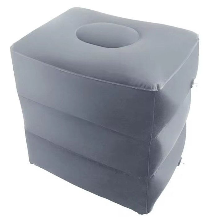 Almofada Inflável Apoio Pés Viagem Avião Escritório Pvc Ajustável 3 Camadas Portátil Conforto Cinza claro