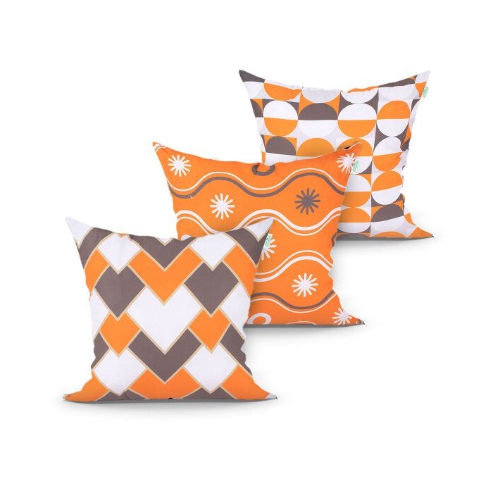 Almofada Laranja para Sala Decorativa Estampada 3 Unidades 45cm x 45cm com Refil de Silicone