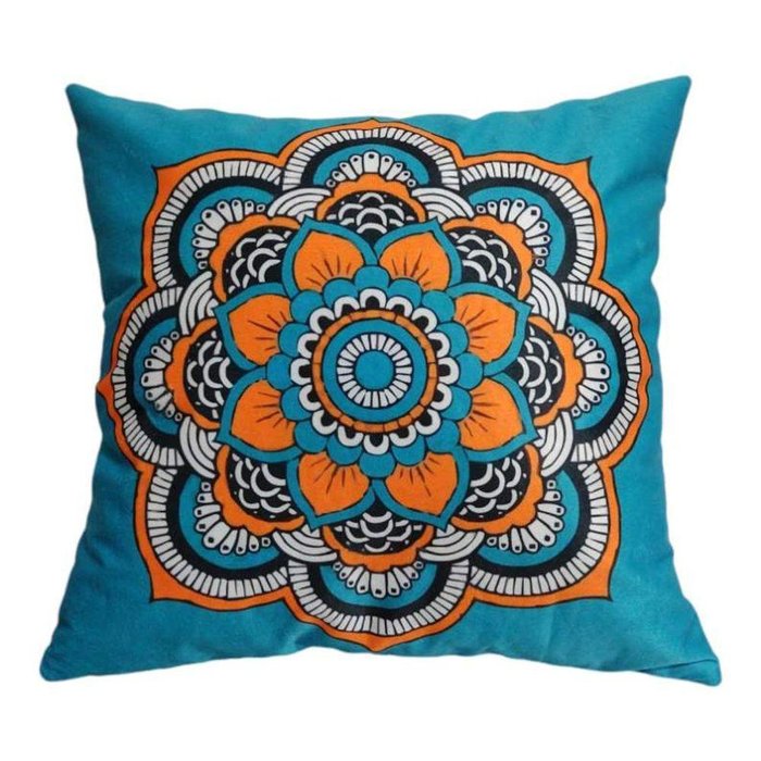 Almofada Mandala Indiana 45x45cm Várias Estampas Azul Turquesa com Enchimento