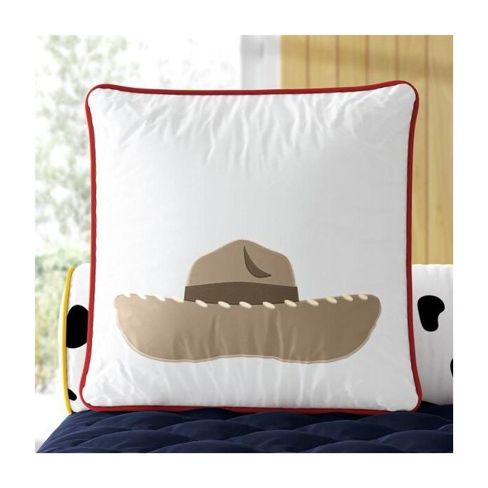Para adicionar um toque de originalidade e conforto à decoração do quarto de bebê ou infantil, conte com a Almofada Quadrada Toy Story Chapéu Woody. Essa almofadinha decorativa com bordado oficial do acervo Disney e Pixar já vem com enchimento macio e fino acabamento em viés cordonê vermelho, que emoldura a peça com capricho. Você pode usar sobre a cama babá, na poltrona amamentação e até na caminha infantil.