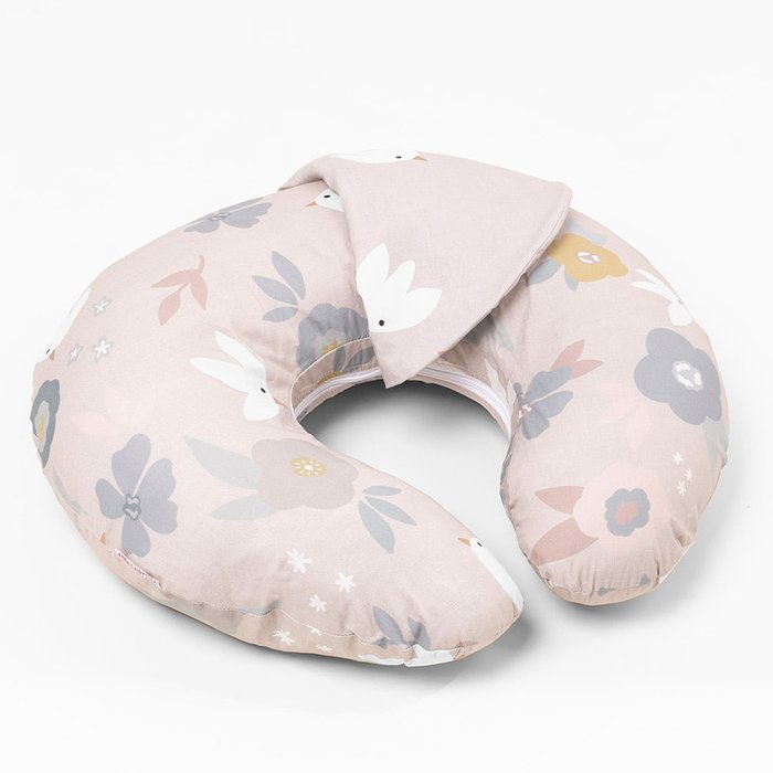 Almofada para Amamentação Floral + Capa Pássaros Rosa Abra Casa