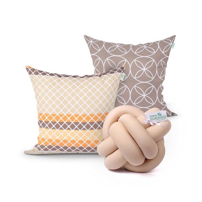| Conteúdo da Embalagem | 02 - Almofadas Estampadas 45cm x 45cm com Refil de Silicone01 - Almofada Nó Escandinavo |