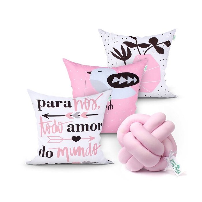 | Conteúdo da Embalagem | 03 - Almofadas Estampadas 45cm x 45cm com Refil de Silicone01 - Almofada Nó Escandinavo |